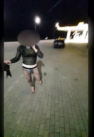 Sissy Vicky TRANSSEXUAL rambling the parking at night