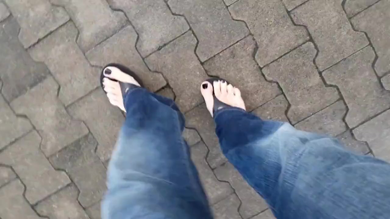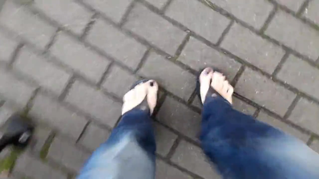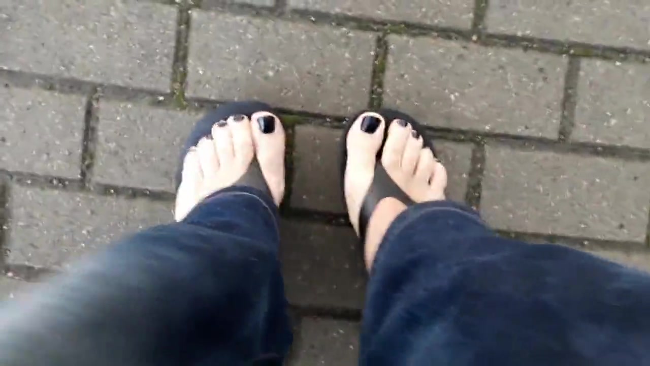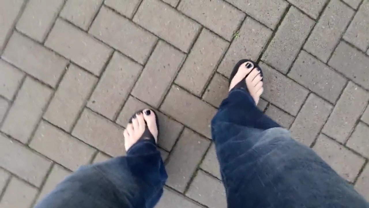 stellar crossdresser flashes off her awesome soles in platform roll flops on a nig...
