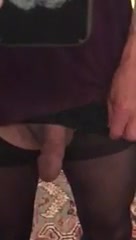 Ebony groin less stockings and mini micro-skirt