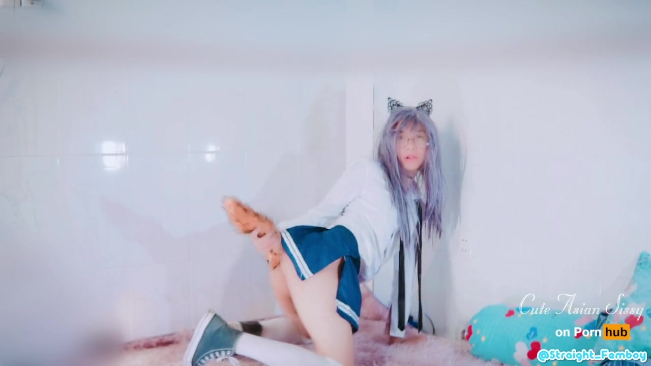 Lovely Chinese Crossdresser in College Uniform & Spunk