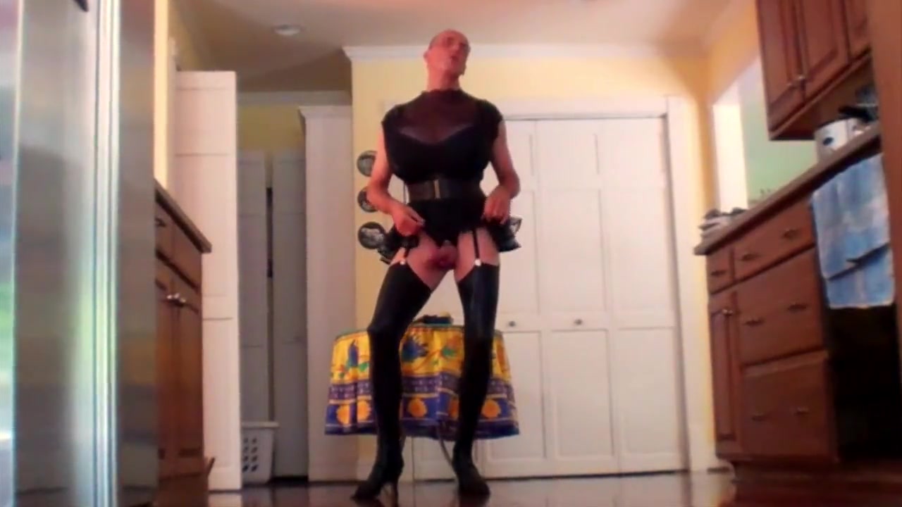 black faux-latex cat suit, and frilly petticoat. Big tits....