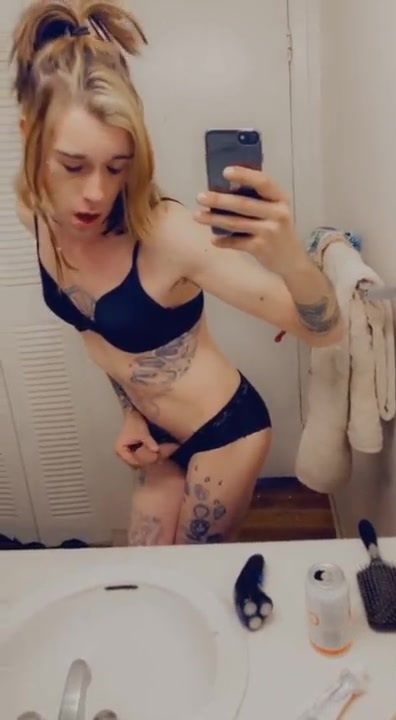 Mind-Blowing She-Male in Underwear frolicking with herself