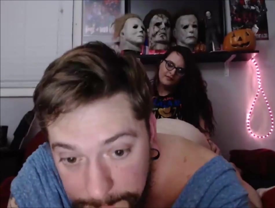 Chubby shemale having her bf's asshole stretched by her hard shecock.