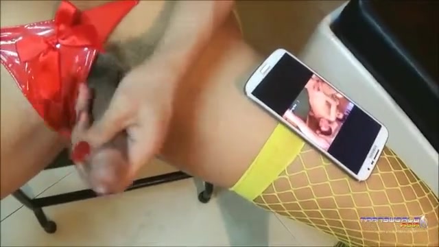 TRANSSEXUAL first-timer milking hard-on after taunting