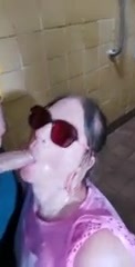 Grubby nymph chantelle swallows mans pee & socks a fellow's spear