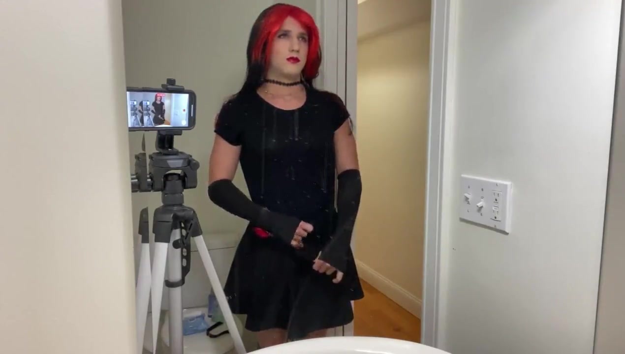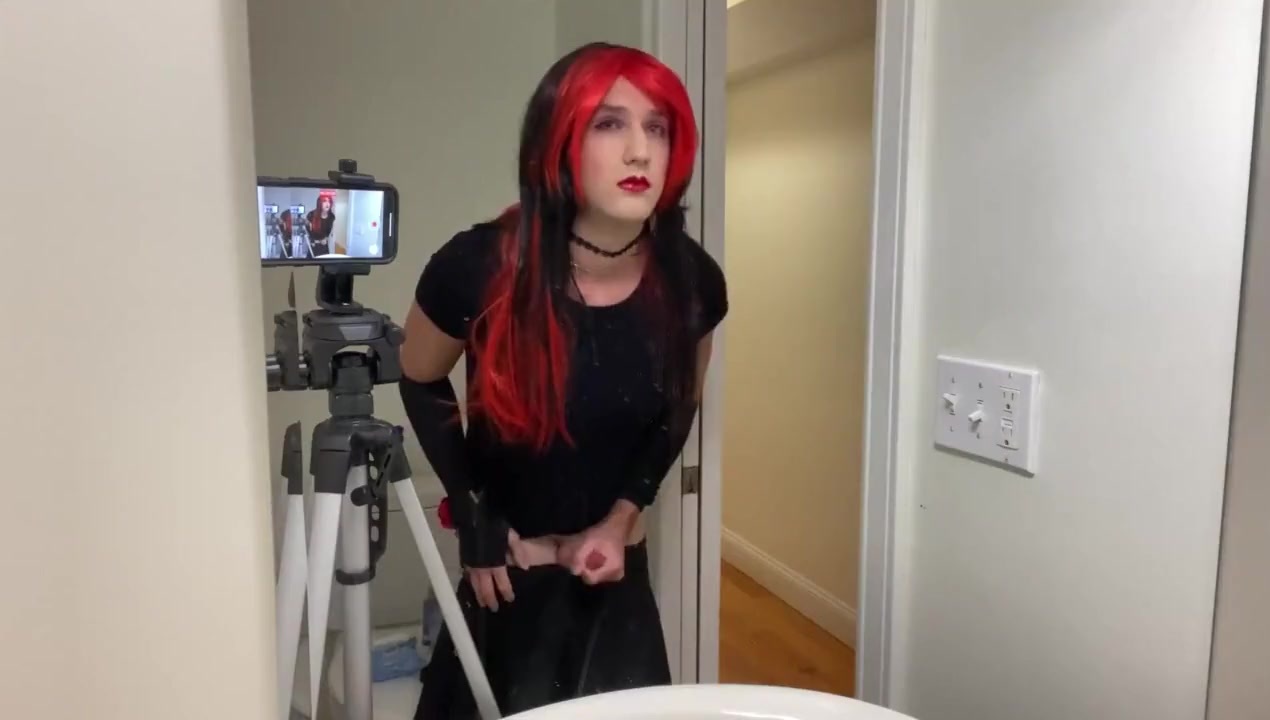 Punk dominatrix Dressing up her fresh crossdresser TV sissy marionette pt1 HD