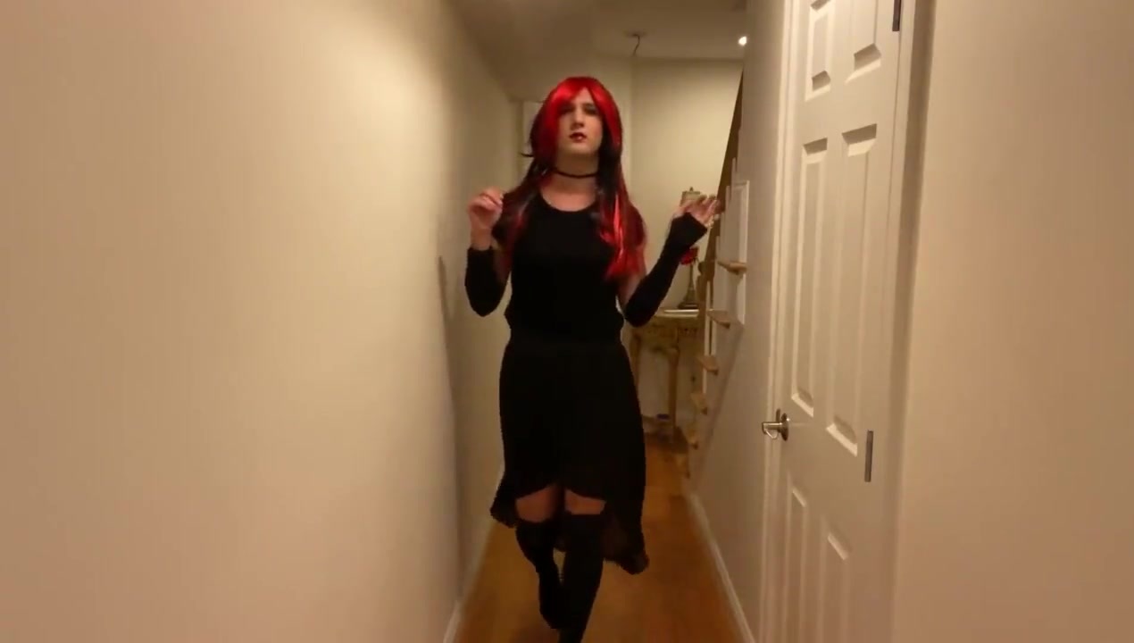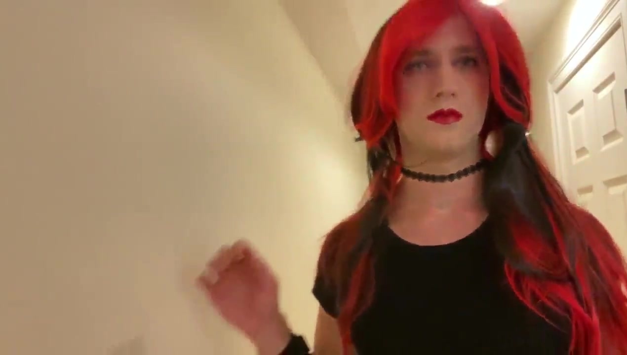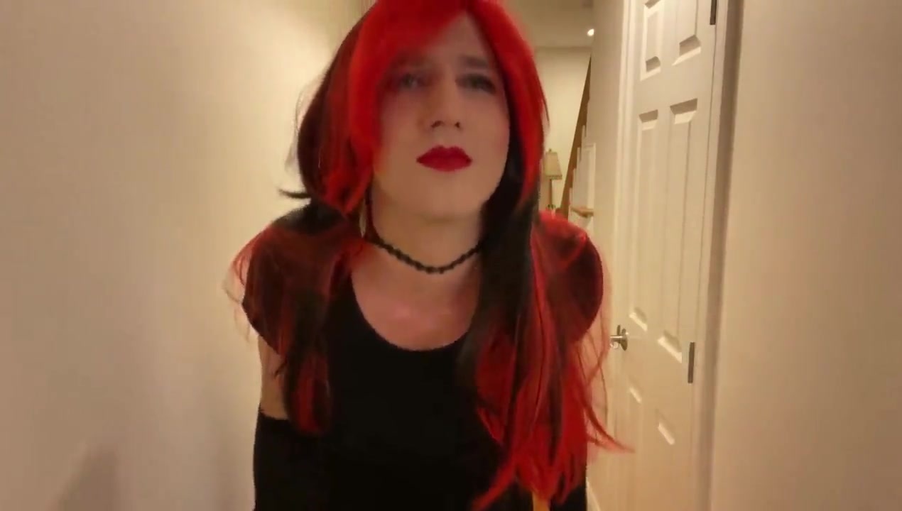 Punk dominatrix Dressing up her fresh crossdresser TV sissy marionette pt1 HD