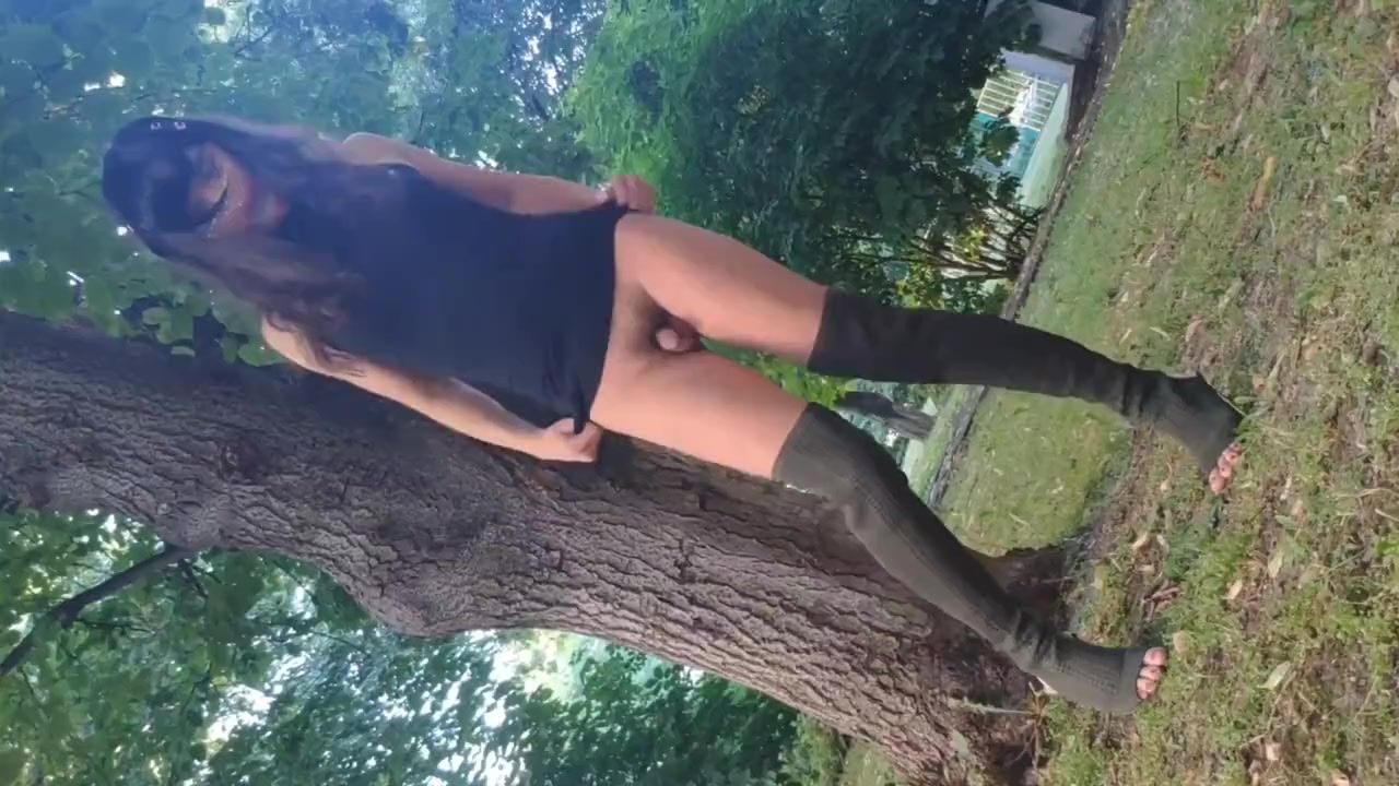 Little Ponnyboy shemale walking in the street in public wearing sexy stockings shoes