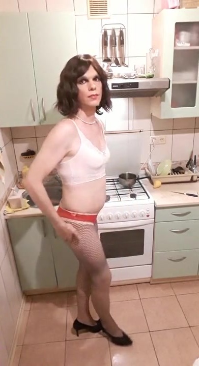 I'm wearing fishnet pantyhose with some cute panties and showing my cock and ass