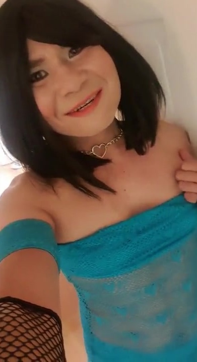 Sissy in blue underpants opens up for BIG BLACK COCK dad