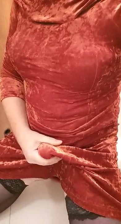 kelly cd pissing and draining in crimson velvet sundress an stocking