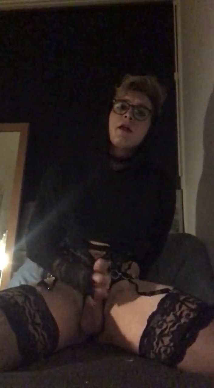 Sissy Glovecum 013 - Dual cum shot of black spandex and leather sissy