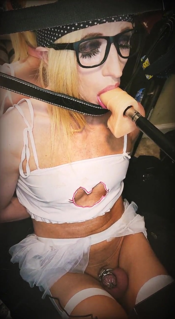 Defenseless SIssy Has Her Mouth Pounded by Faux-Cock Machine