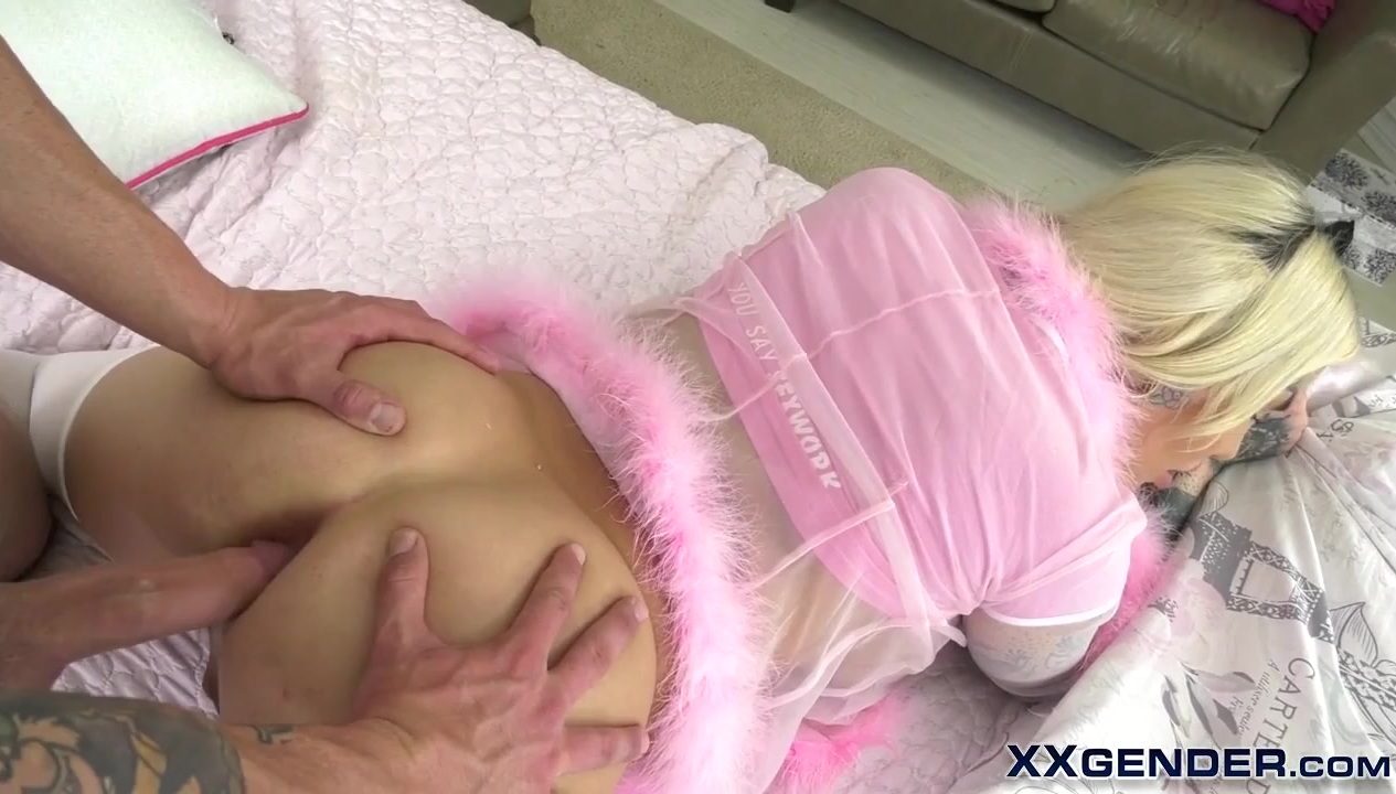Fingerbanged juicy tits trans chick takes cock up her tight butt hole