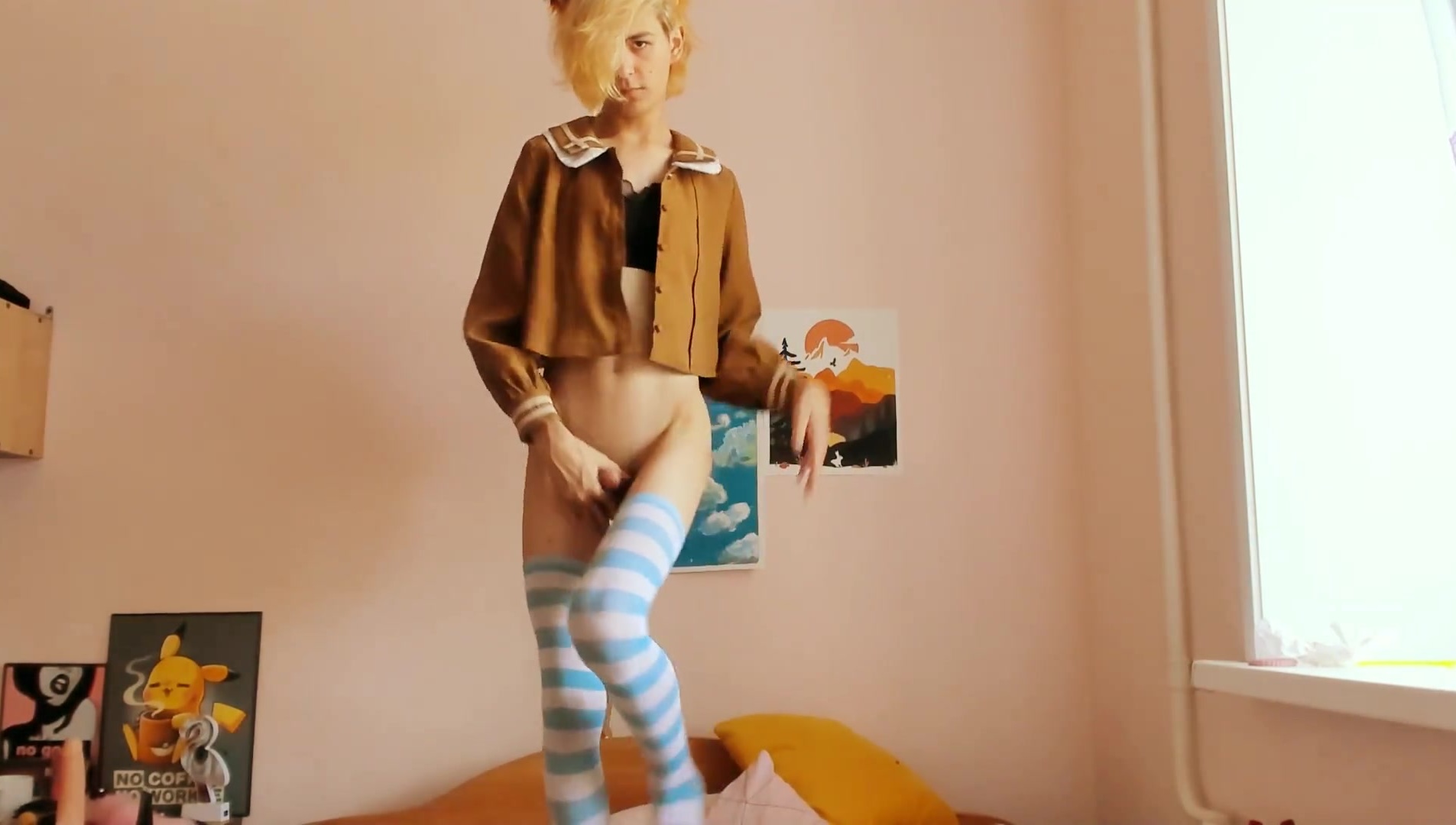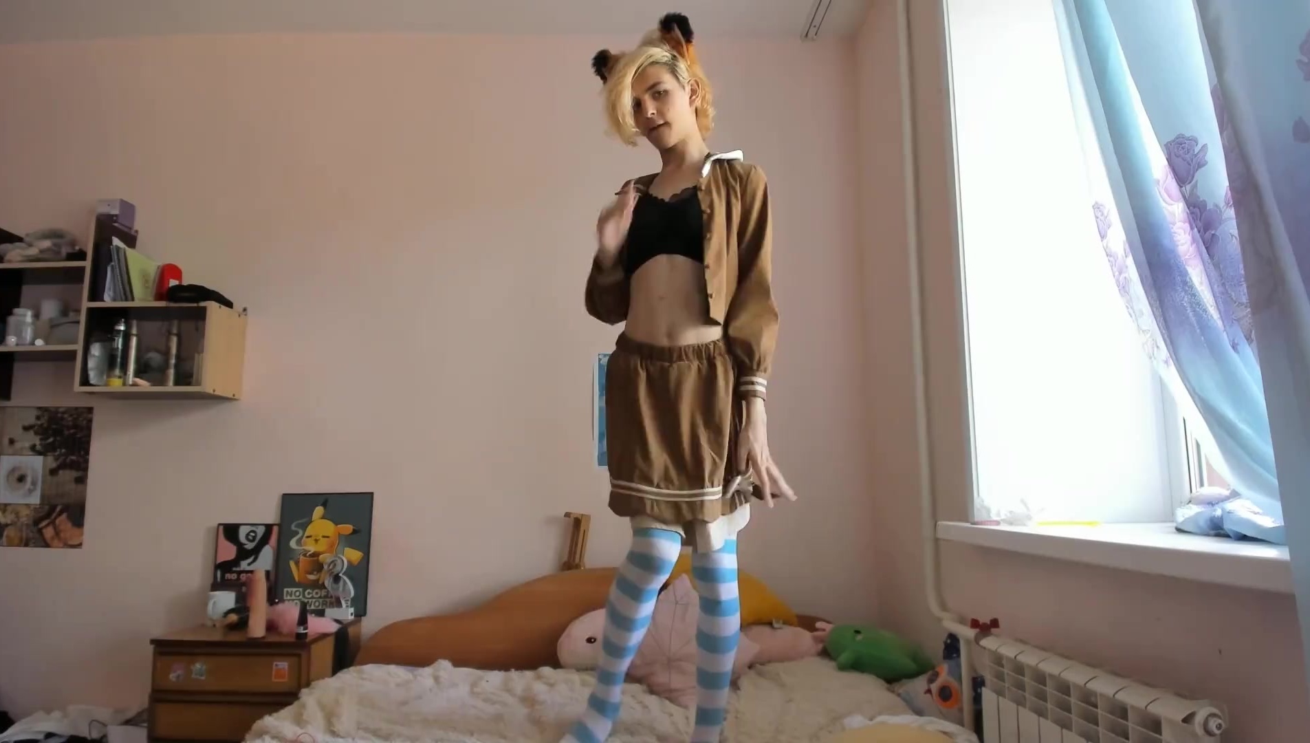 Adorable costume play femboy rails a fake penis and gulps his jizz