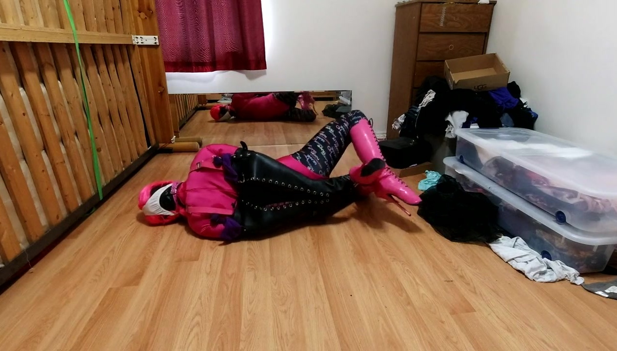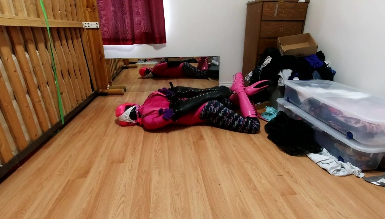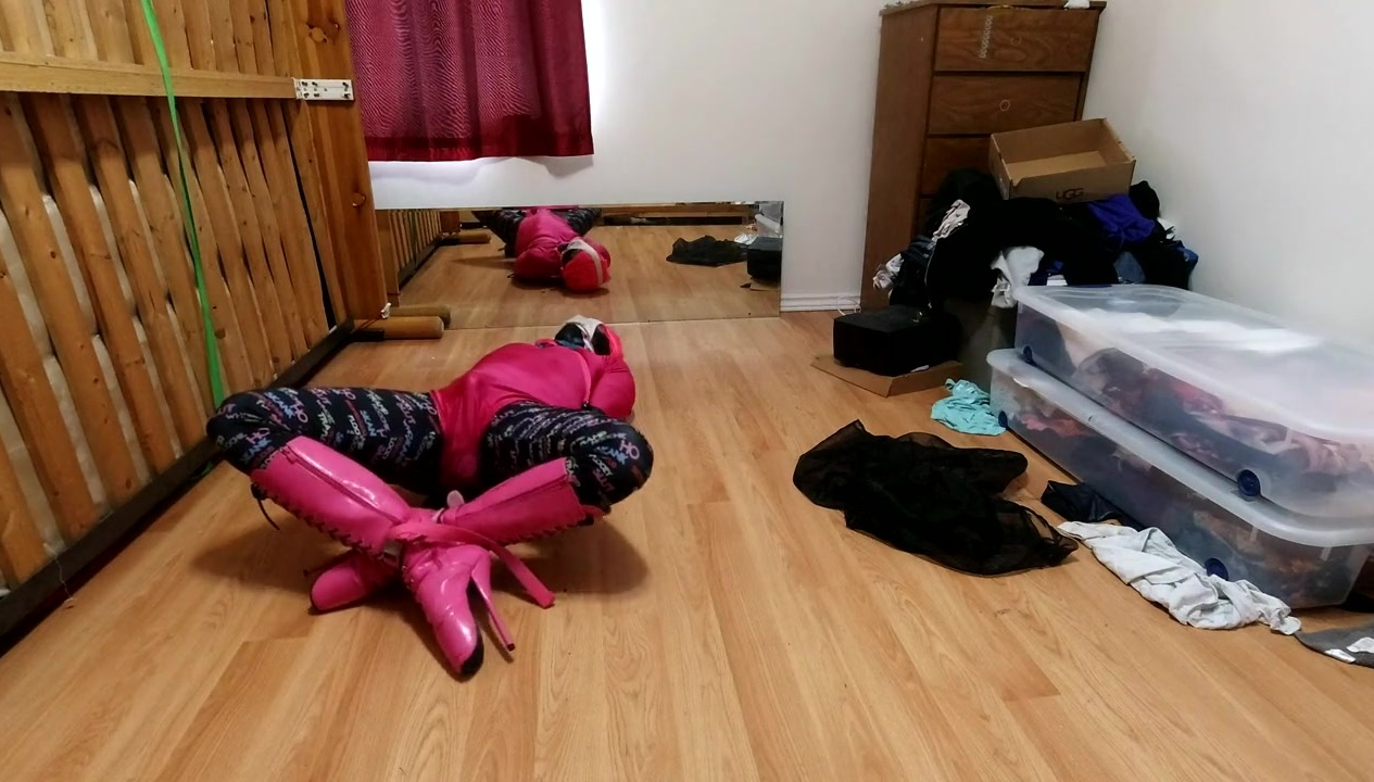 a little christmas eve fun in a self bondage hogtie with my favorite leather armbinder.