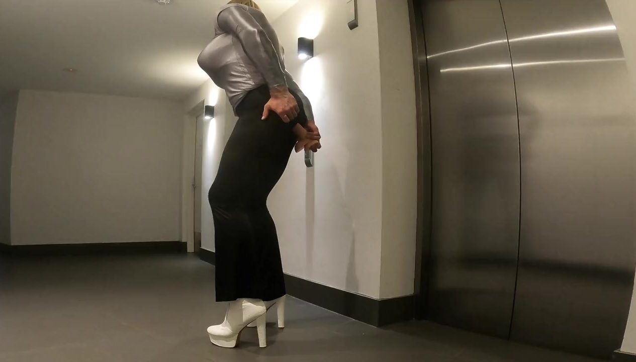 Muscle Glamazon Horny Public Elevator Sissygasm