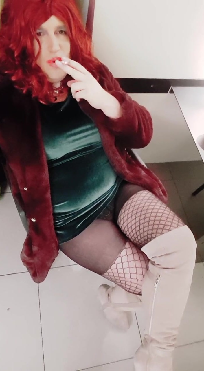 Crossdresser tatiana smoking with my high heel footwear
