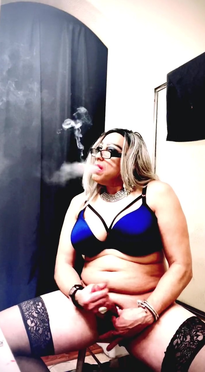 Big dick Smoking Fetish Goddess, Mistress Marilyn, Masturbation blonde stroke fun. Likes to fuck Slut sub slave bottom bitches with my huge crossdresser trans Gurl cock. Tight ass is my favorite.