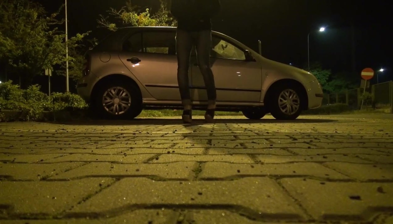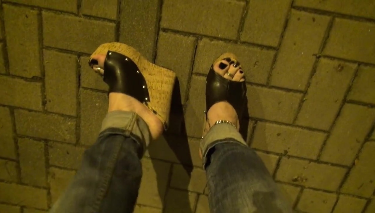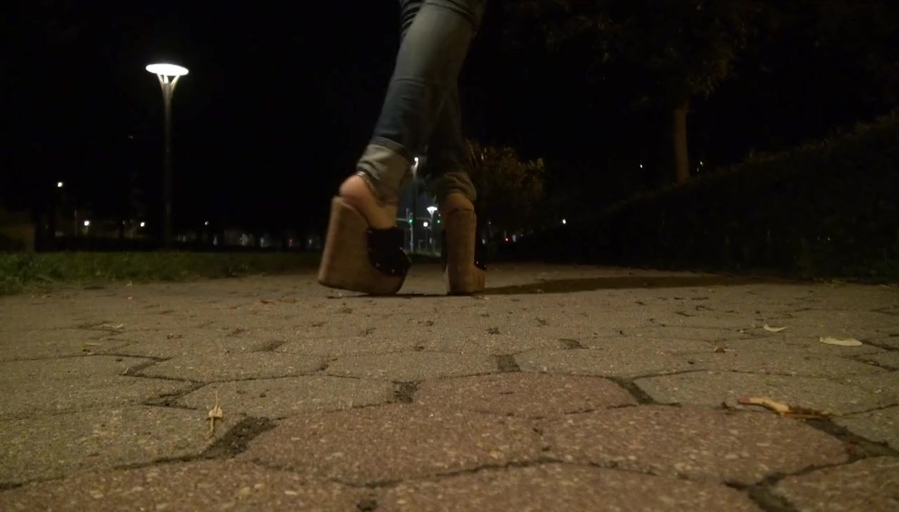 crossdresser with sexy feet on a night walk