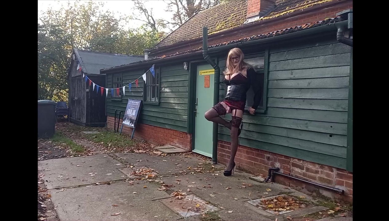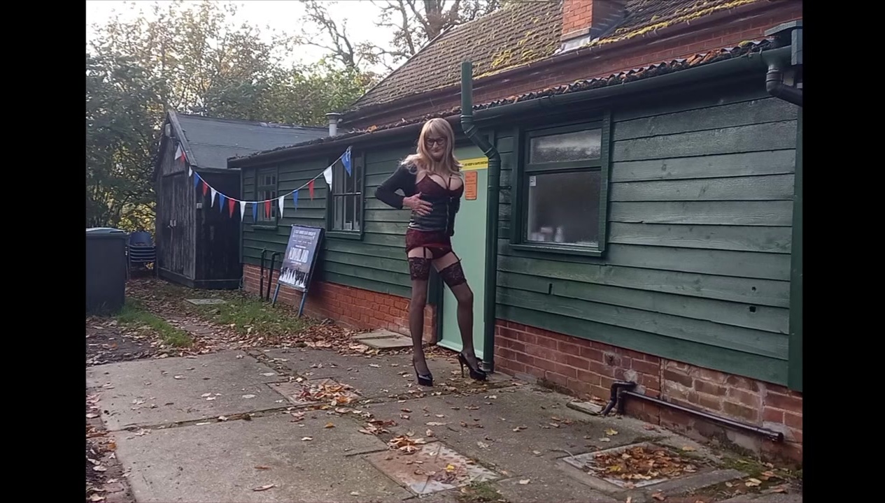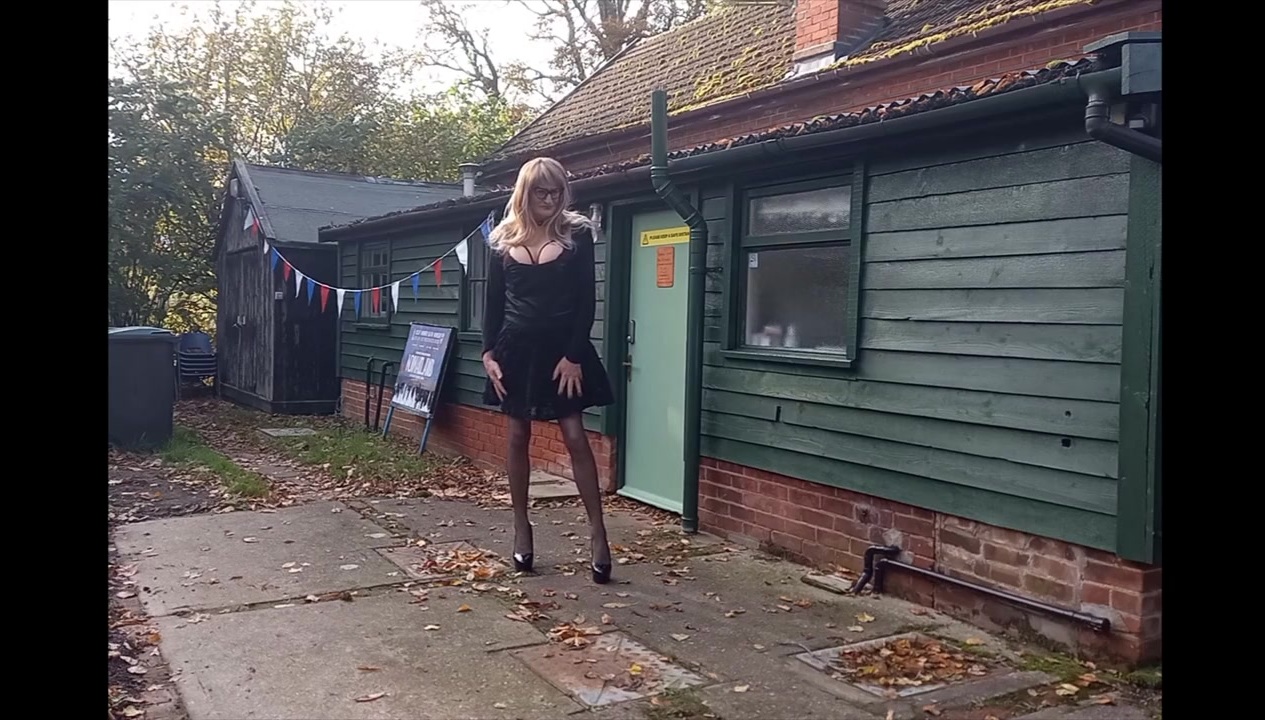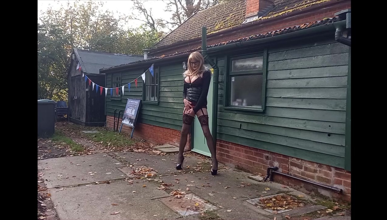 Tranny Gina Trent parades around in black lingerie, then strips to get cock out