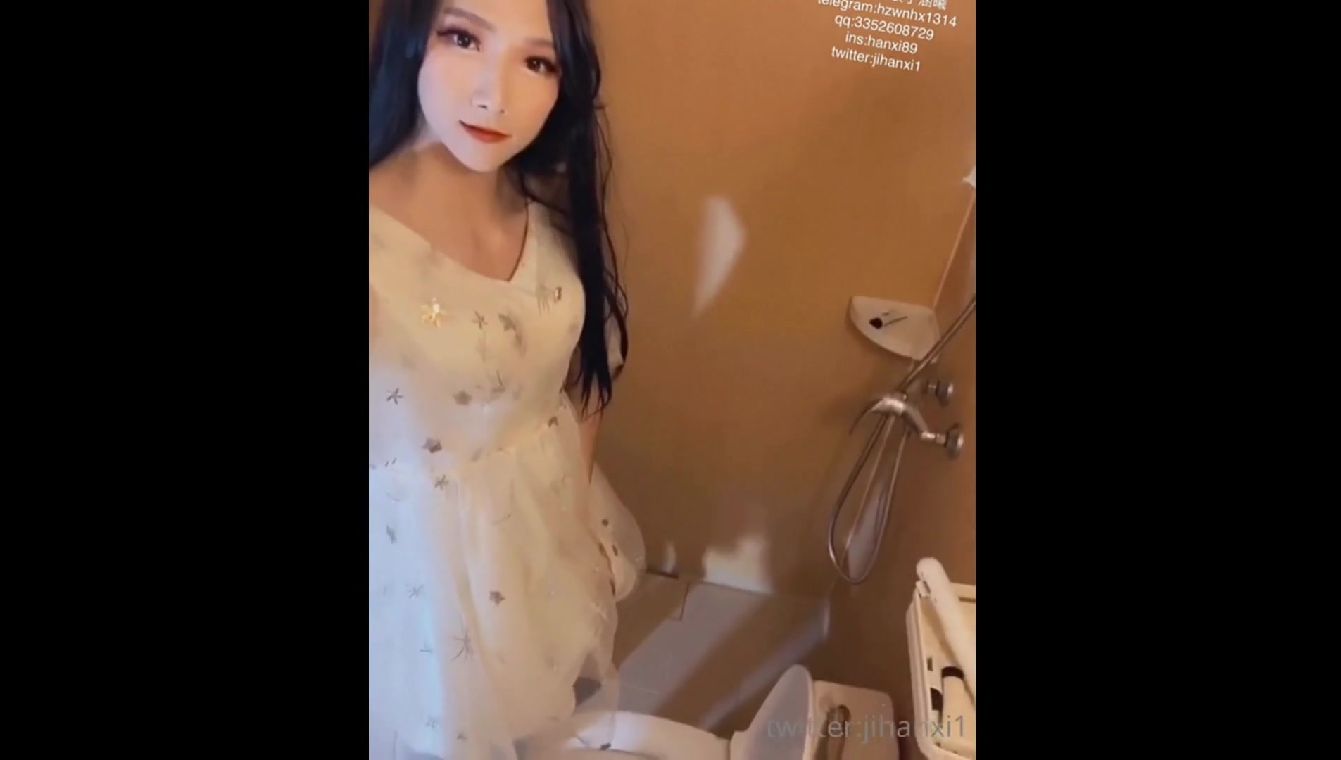 Nice t-girl on a pretty sundress urinating on the restroom milking and jizm nut-juice