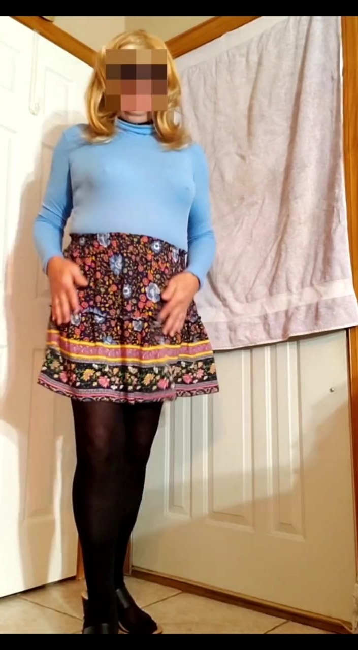 In my nylon tights, leotard and dress. I feel and caress my breasts and body. Then I lube up nice and wet. Dildo fuck myself and masturbate until I cum on myself.