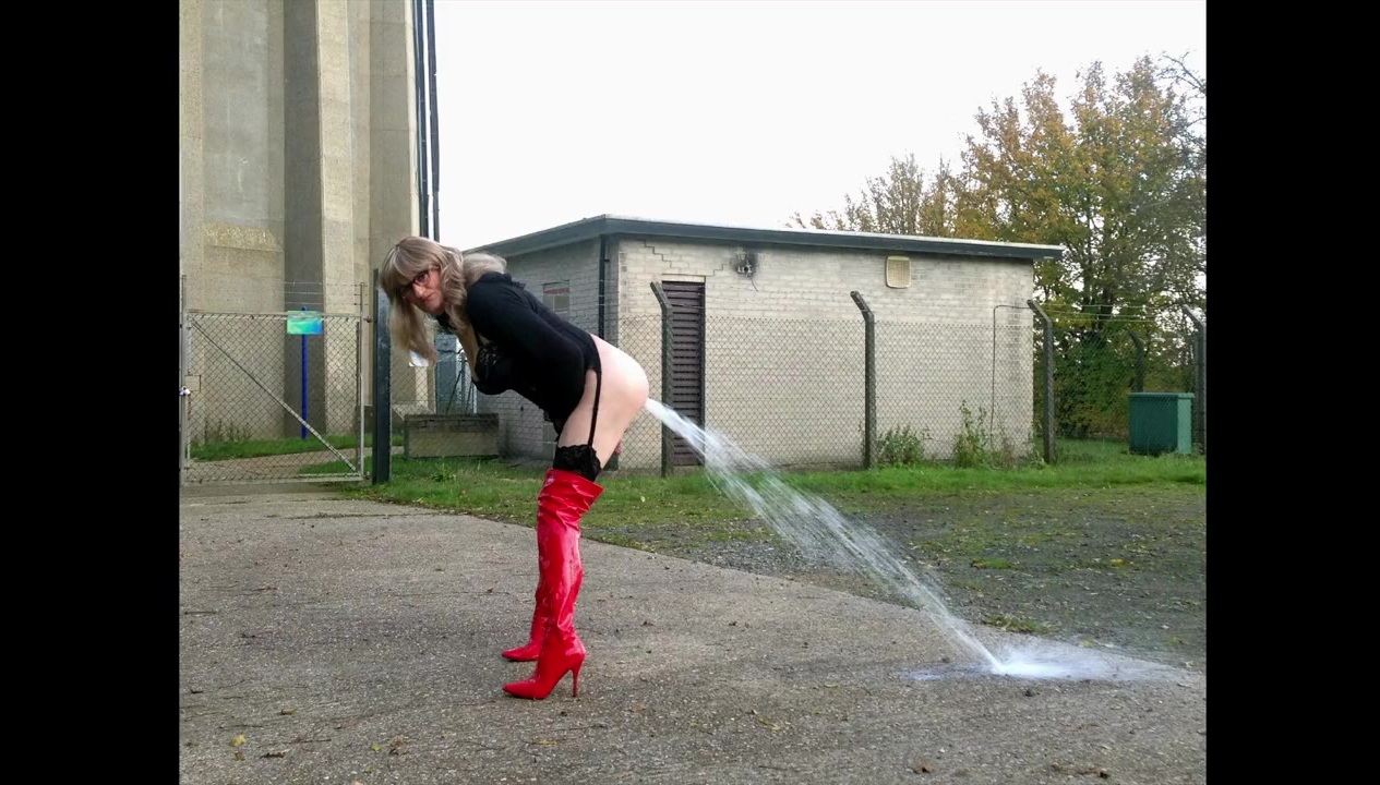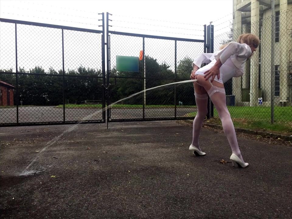 Collection of photos of Gina Trent squirting milk from her ass outdoors in public