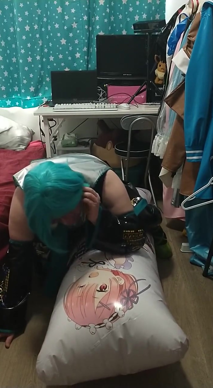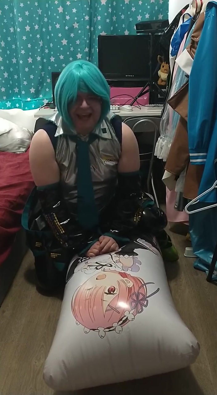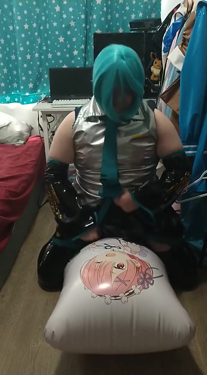 Sissy Vinyl Miku Costume Play Inflatable Cushion Romp Spunk Gobbling