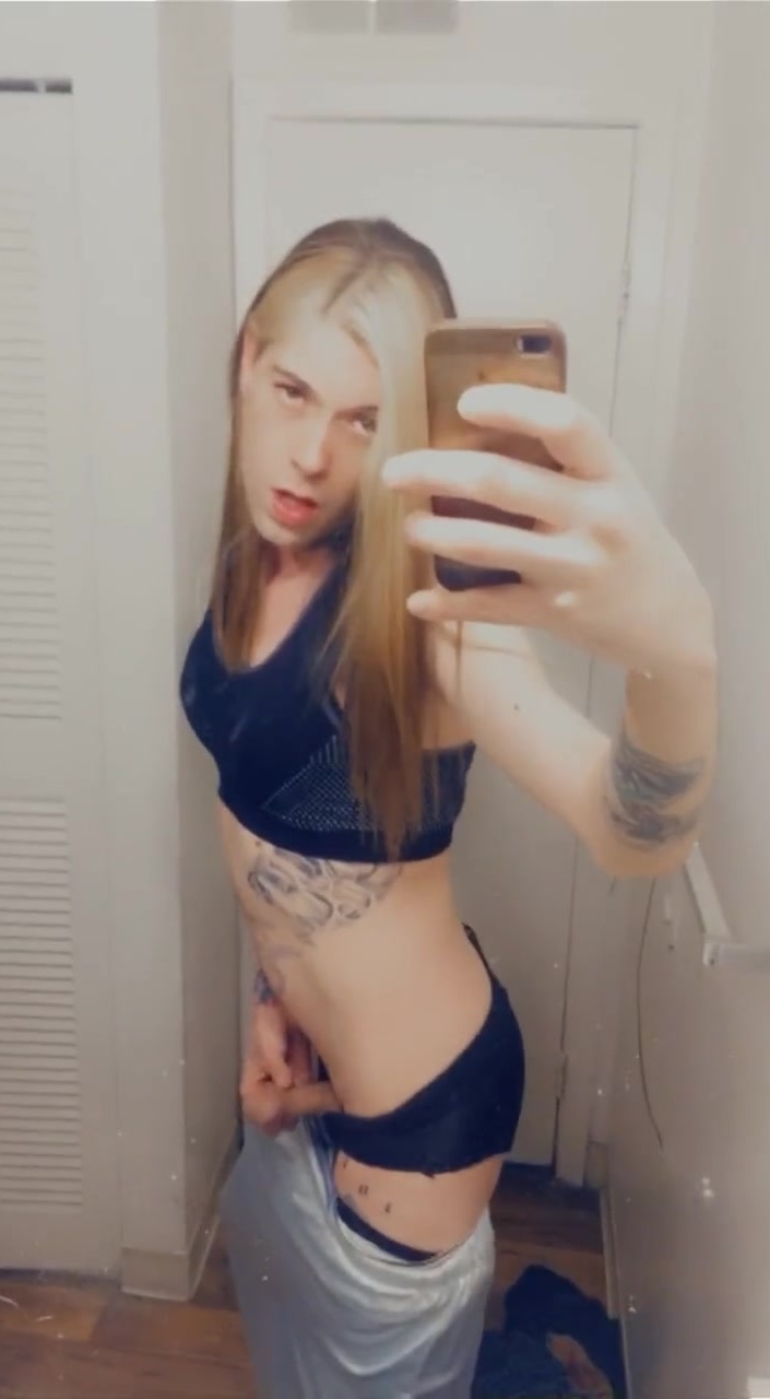 Lovely Trans Spurts Her Satin Jimmies To Demonstrate Her Lil Shaft