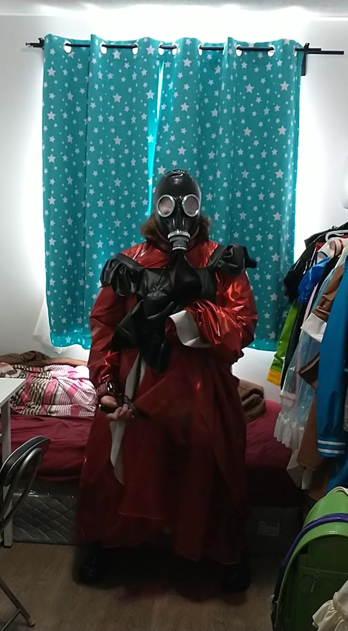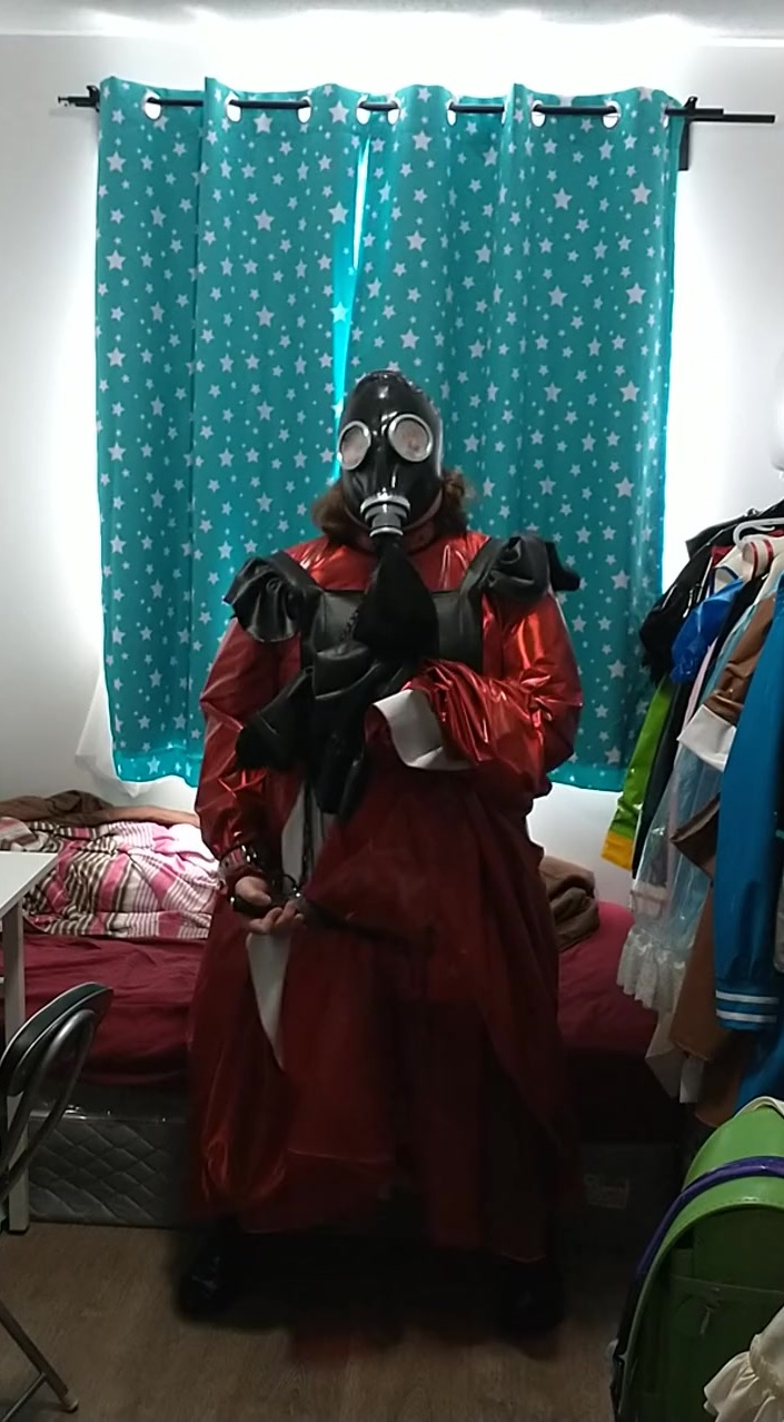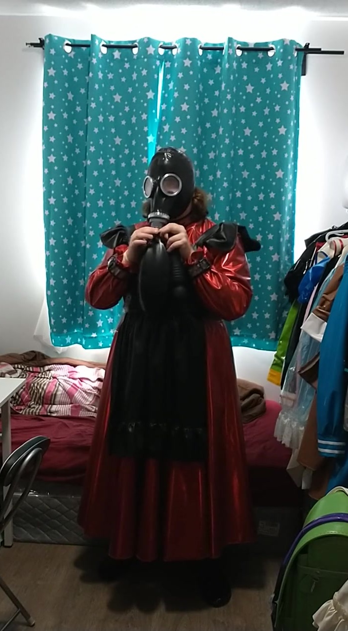 Sissy Maid Gasmask Breathplay Crimson Sundress Electro-Hitachi