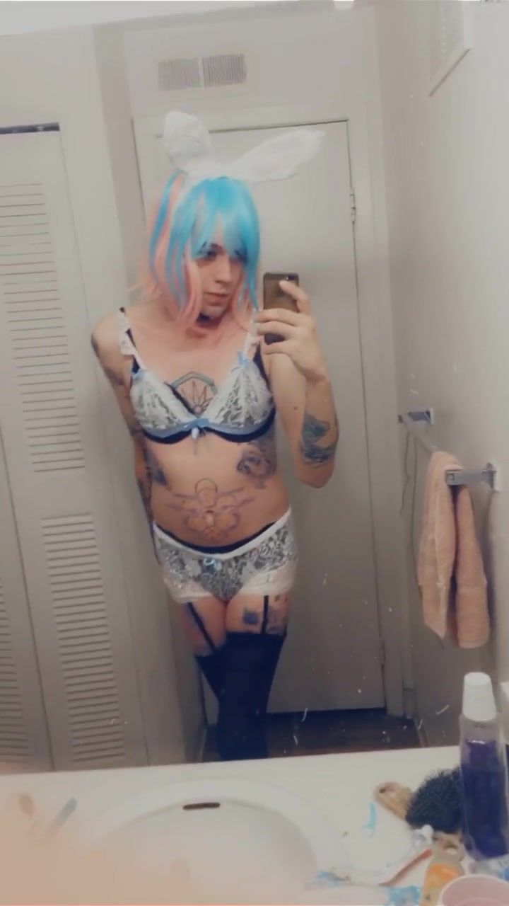 She loves being a bunny girl and teasing cock. Would you let her suck you off in her lingerie?