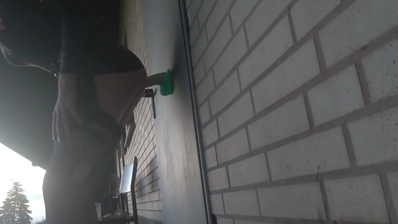 Sissy screwing BIG BLACK COCK Fuck stick in public stairwell