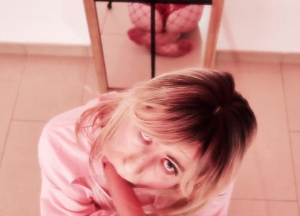 Uber-Cute sissy give a super-cute suck off on fake penis