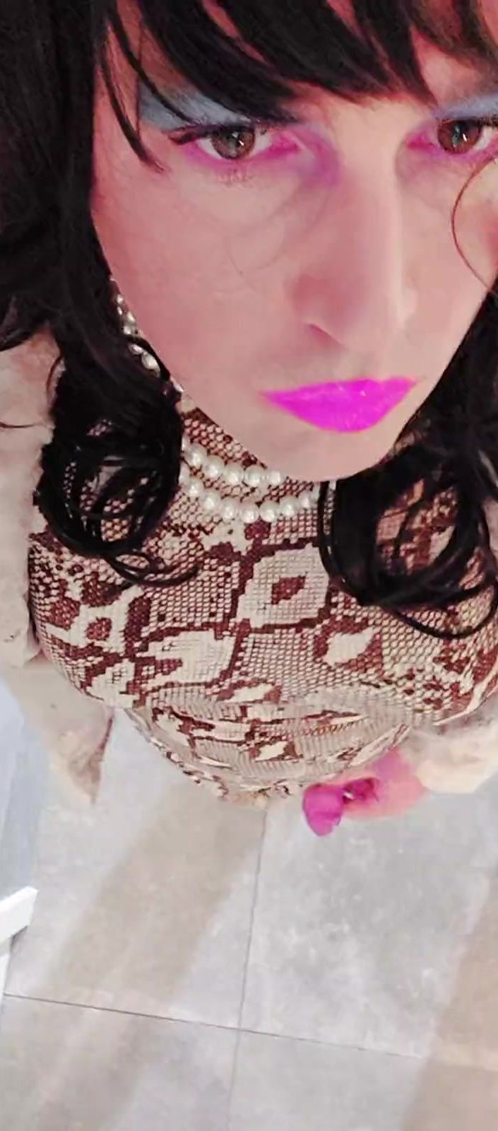 Crossdresser in wool and high heel footwear