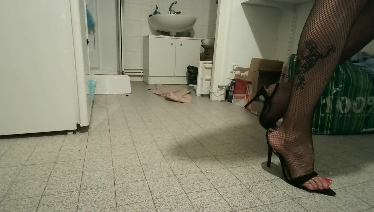 me in black high stilettos and black fishnet stocking and crimson grind toesnails