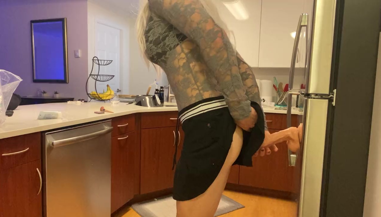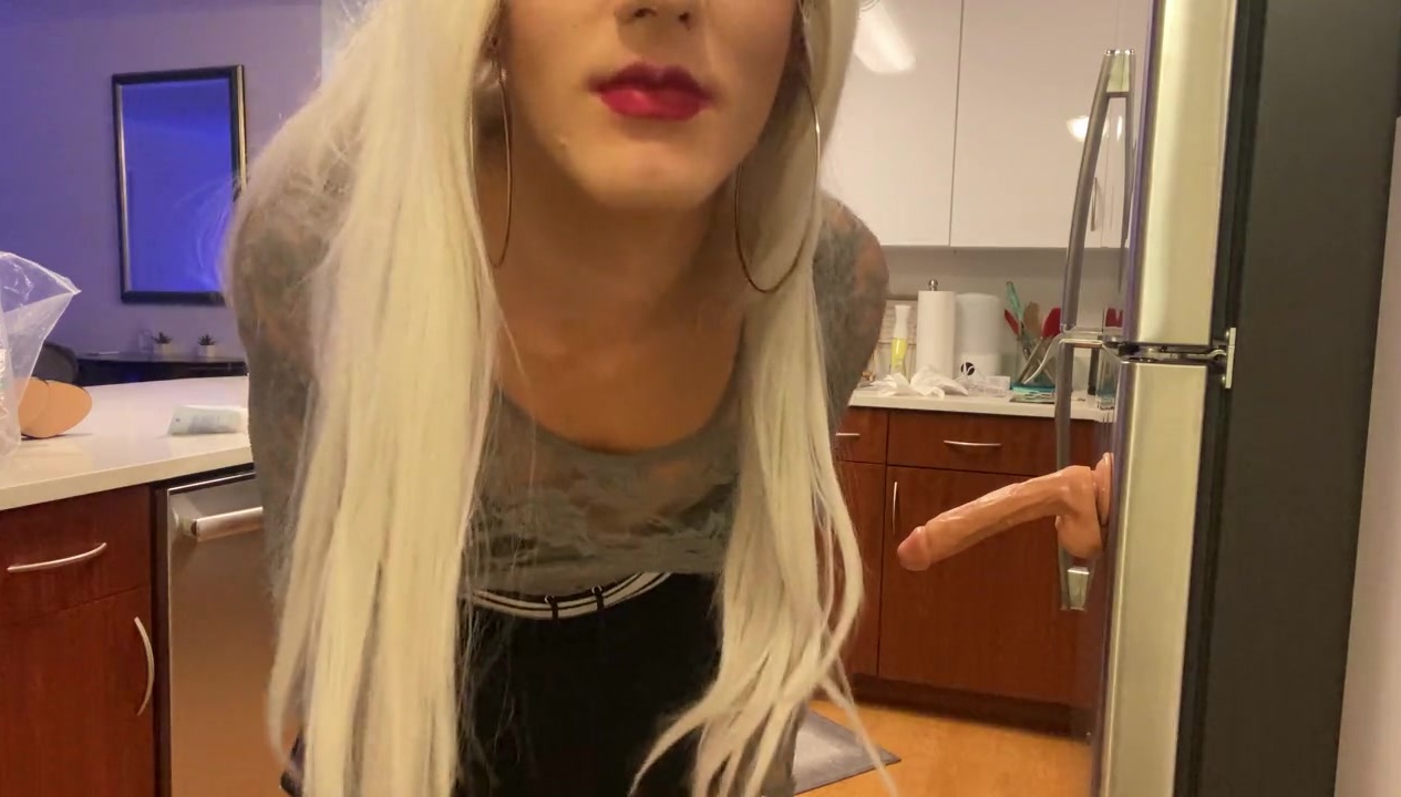 Red-Hot Crossdresser Fake Penis Screwed in Kitchen