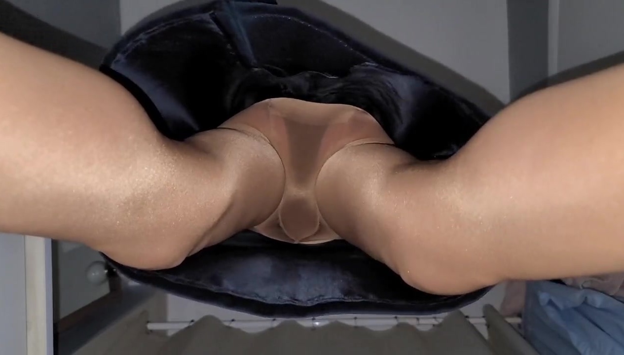 Blue lined flight attendant uniform skirt with shiny glossy pantyhose underneath my Office desk. Lined skirt. Skirt lining. Silky clothing.