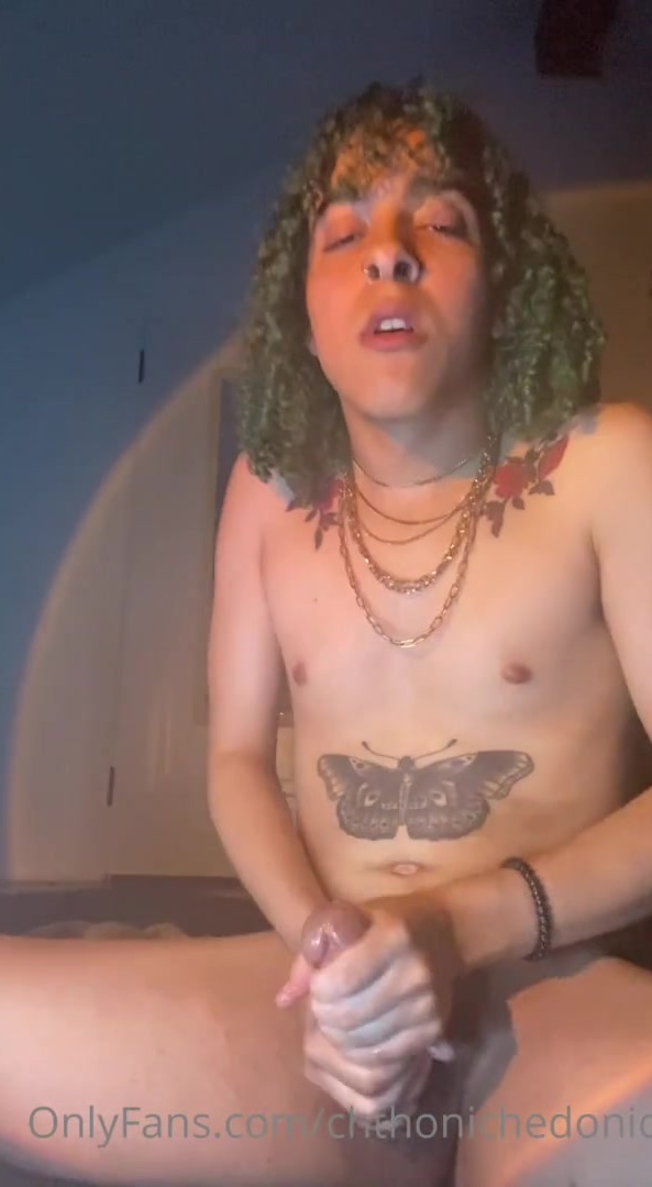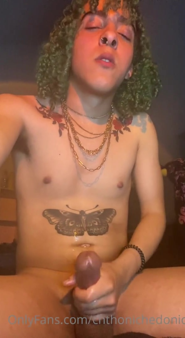 Fat pink cigar sissy femboy solo masturbating and spunking