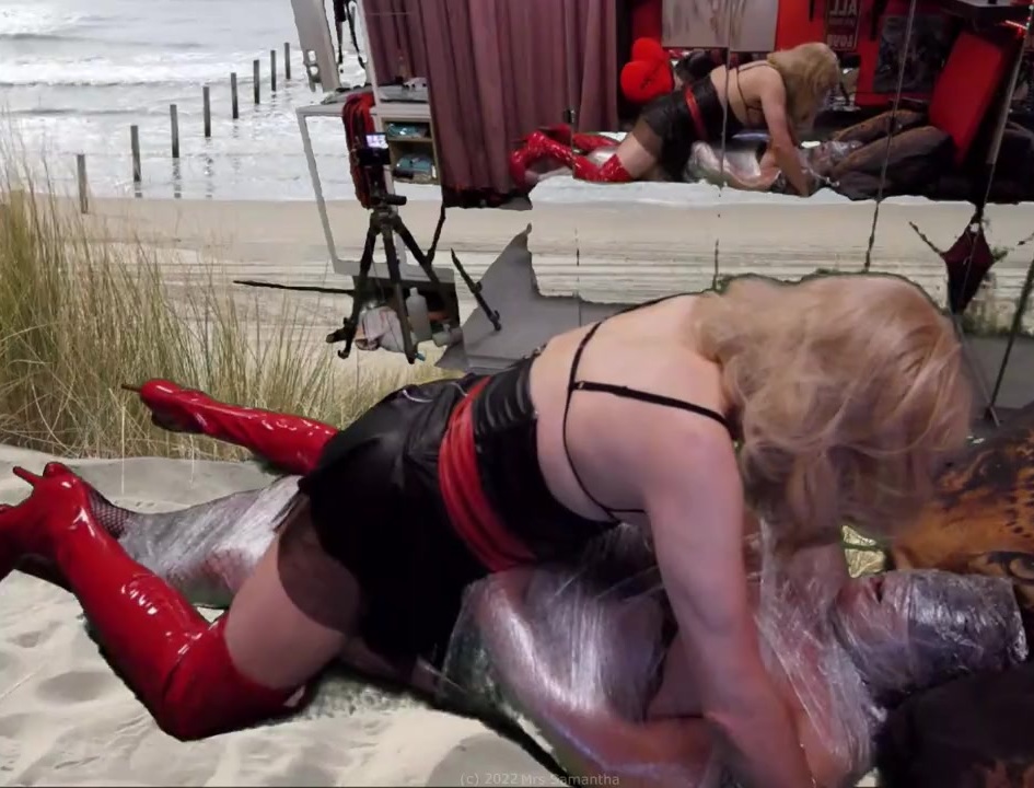 Marina is being fucked in several positions by her Mrs Samantha, after having been turned into a Mummie with plastic foil!