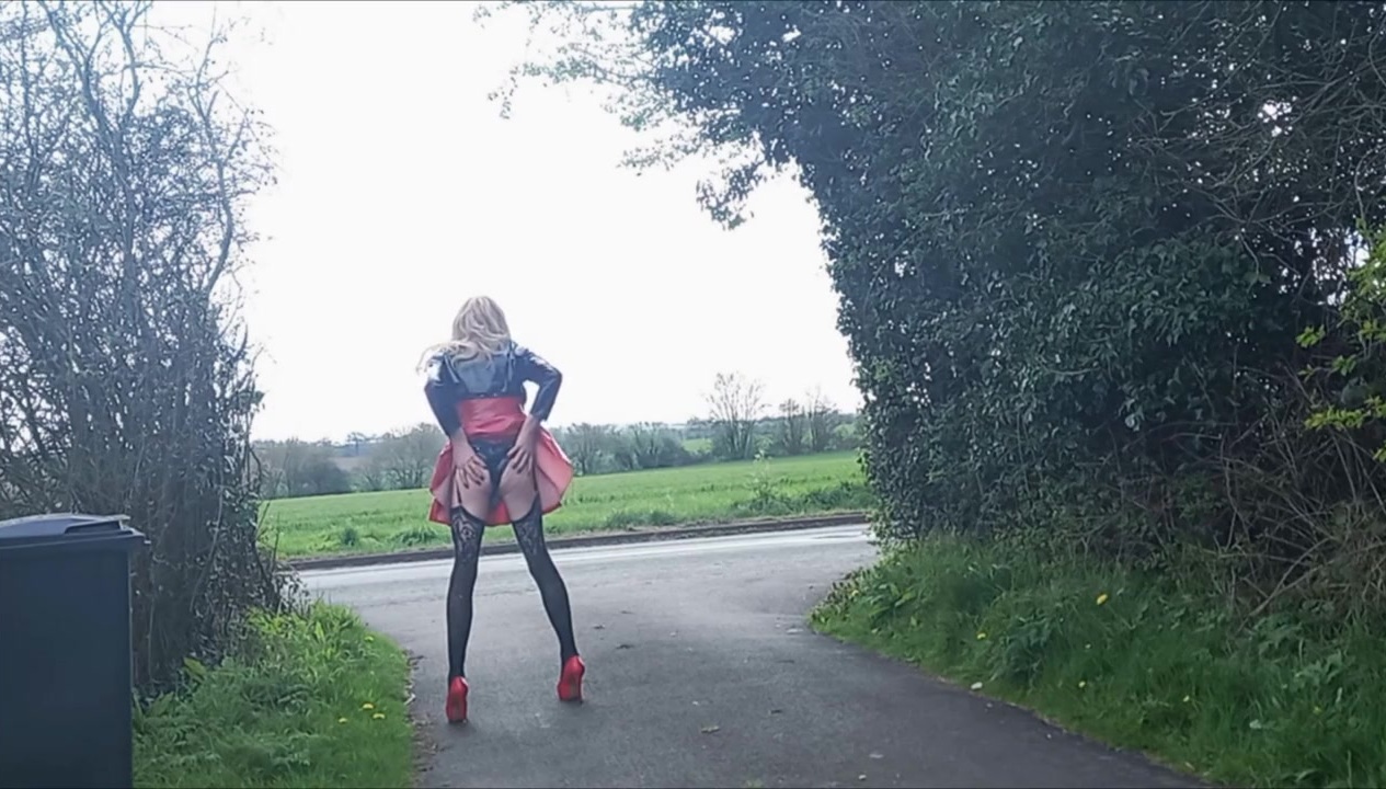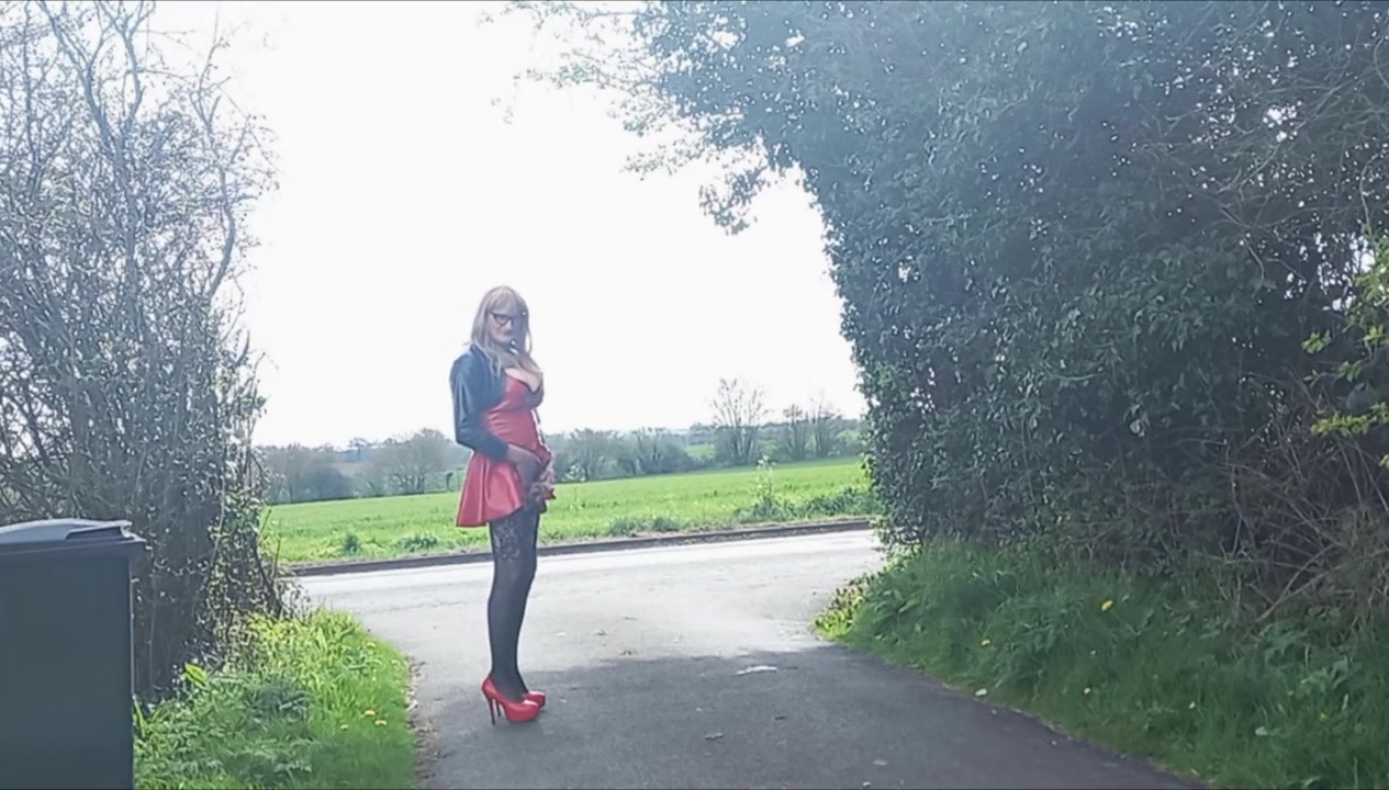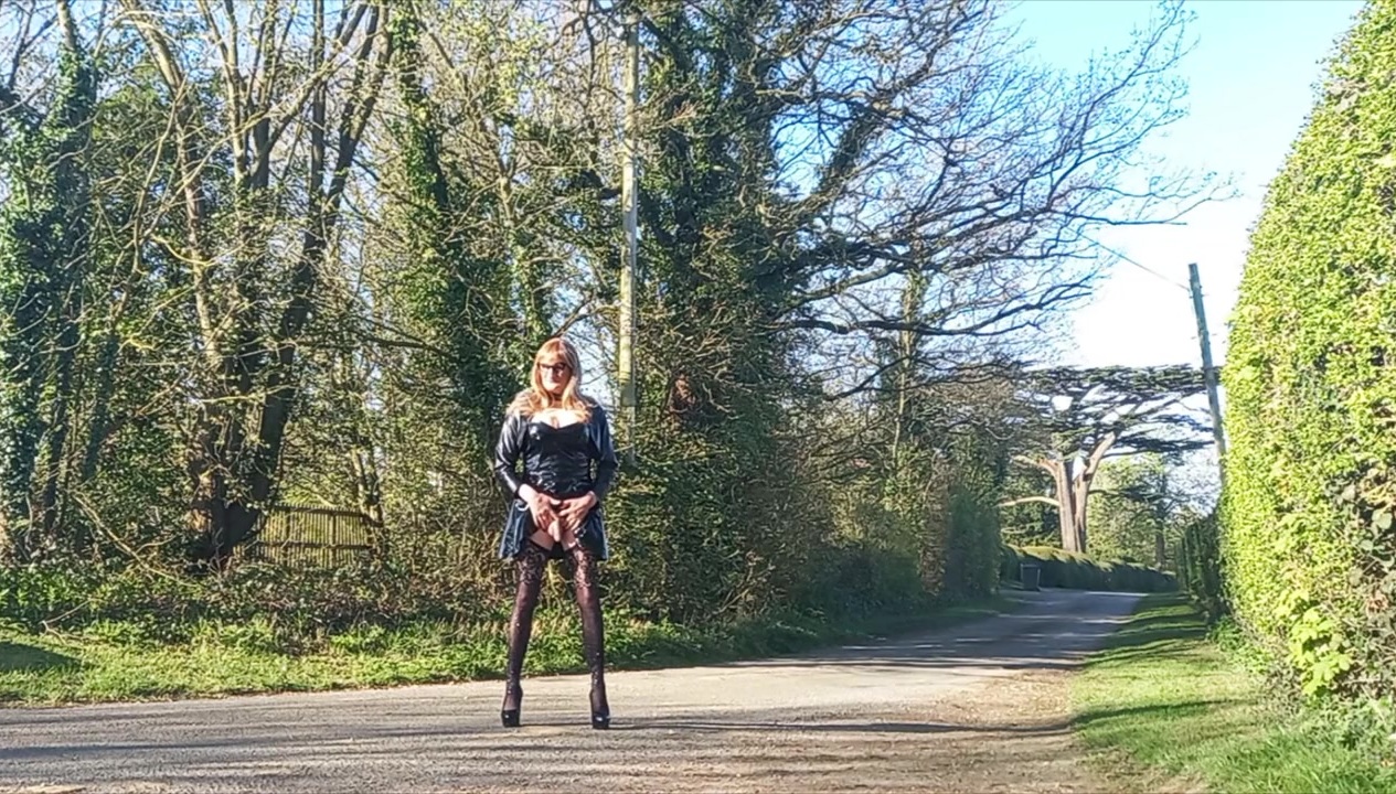 UK Tranny Gina outdoors taking a piss and posing for the camera