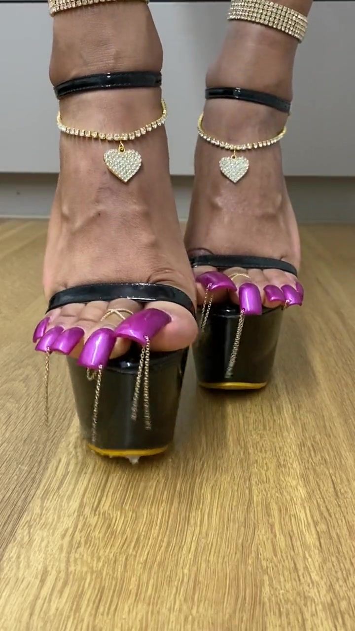 Lofia Tona - Pinkish high high-heeled shoes and purple toenails