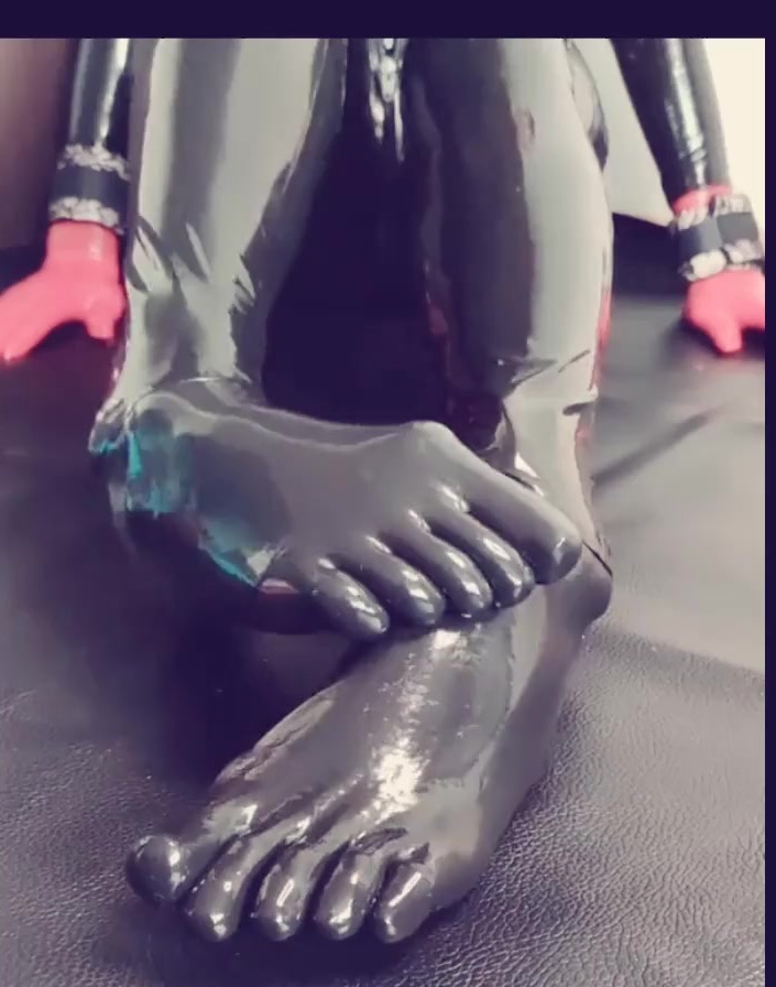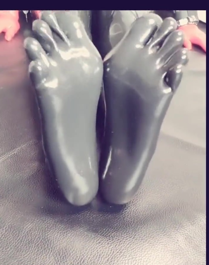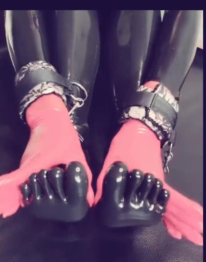 Sizzling T-Girl in Spandex Showcasing her Beautiful Soles and Nads