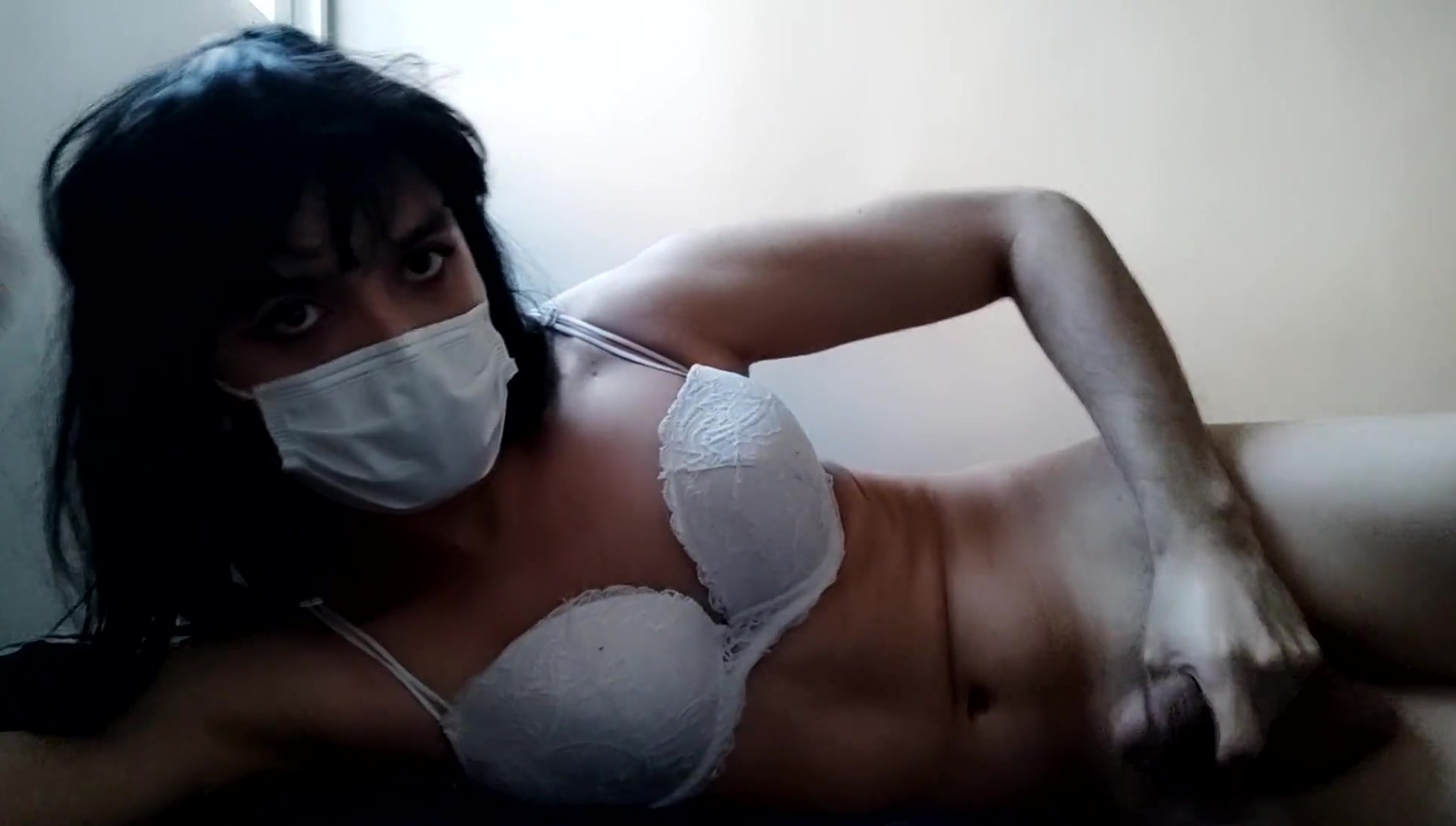 Adorable insane teenager showcasing trouser snake, petting and jizzing in herself
