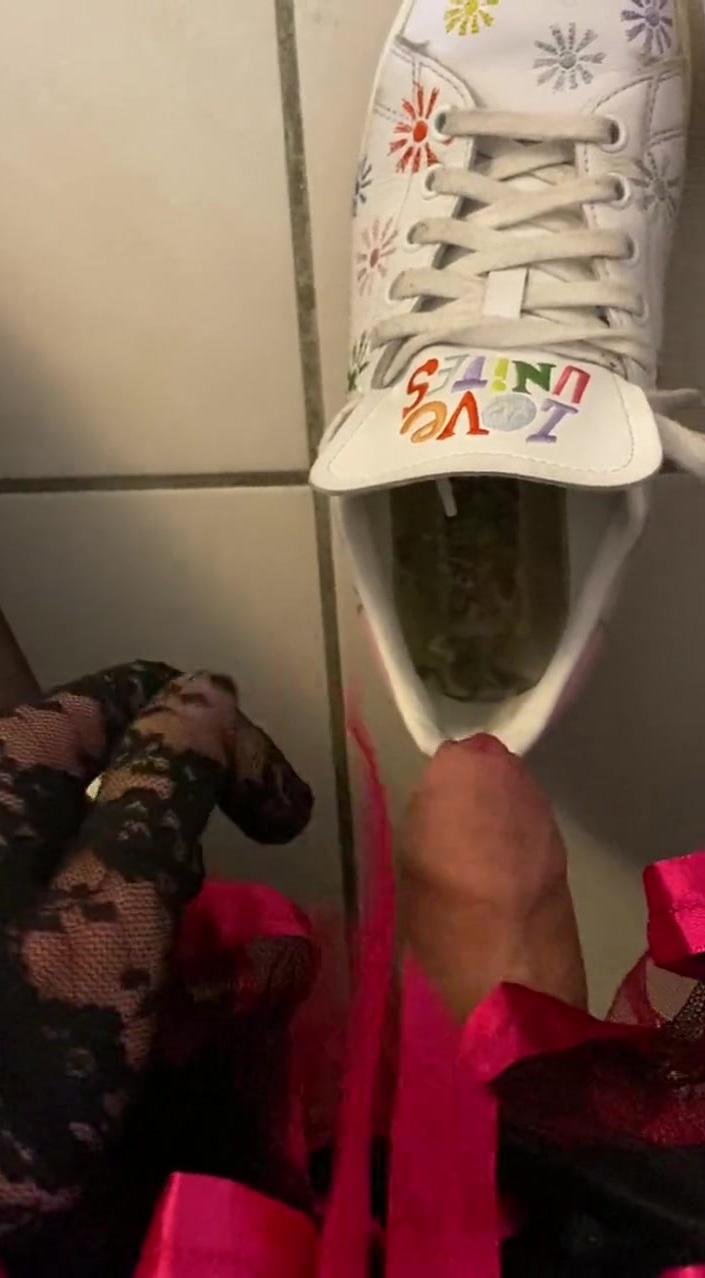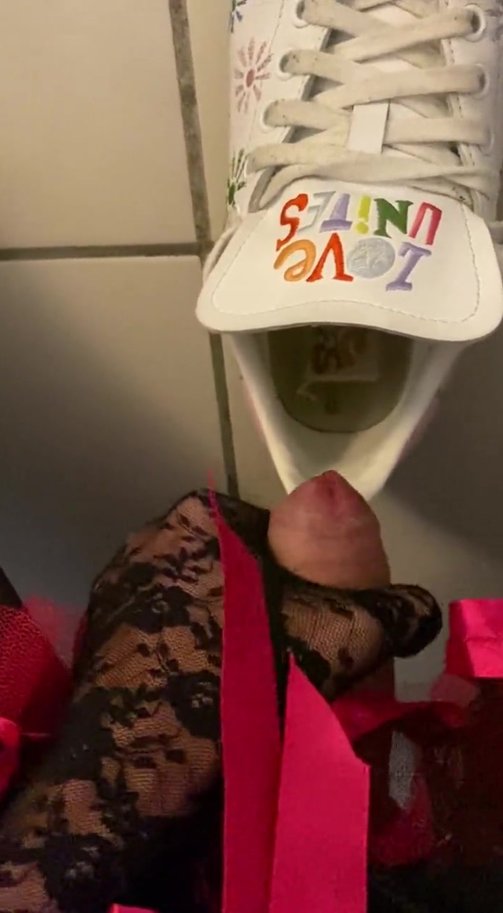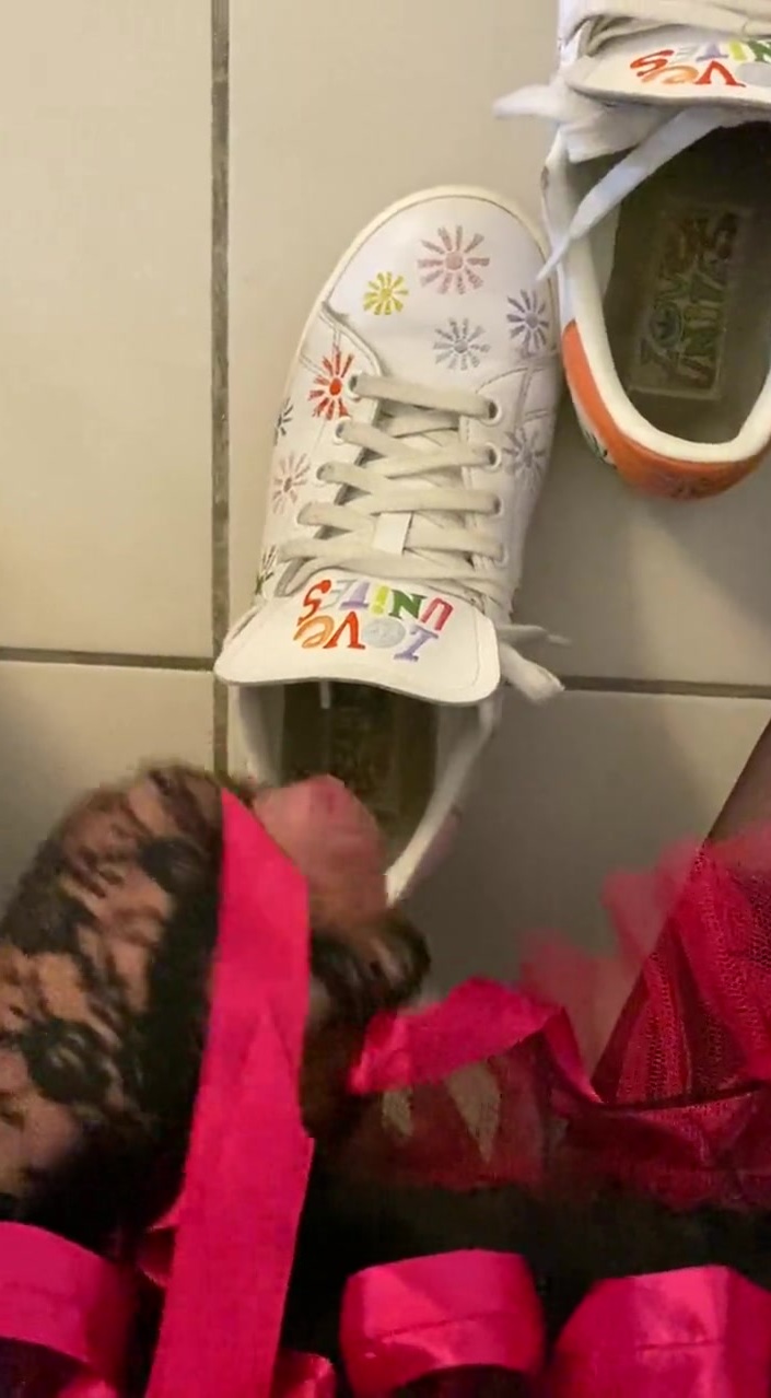 Sissy unsheathes and milks in neighbor woman's sneakers