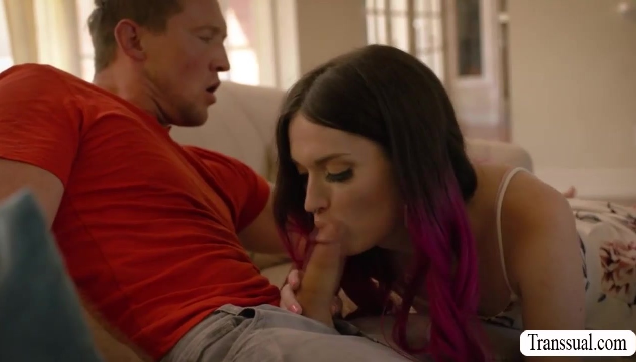 Small tits and pale shemale Natalie Stone is with her horny stepbro.The redhead tranny and the dude exchange kisses.The trans babe deepthroat blowjobs his cock on the couch.The guy bareback anal fucks her tight asshole in several positions.