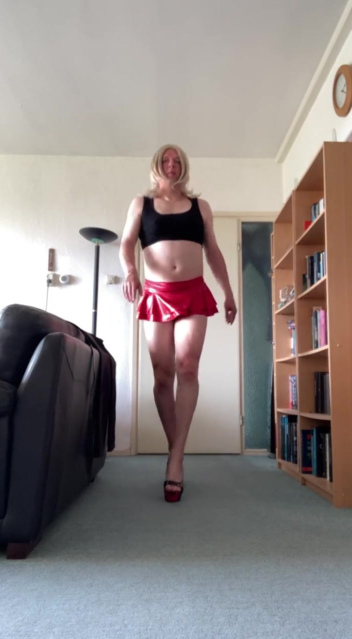 Sissy ambling in her highest 8 inch pinkish high-heeled shoes