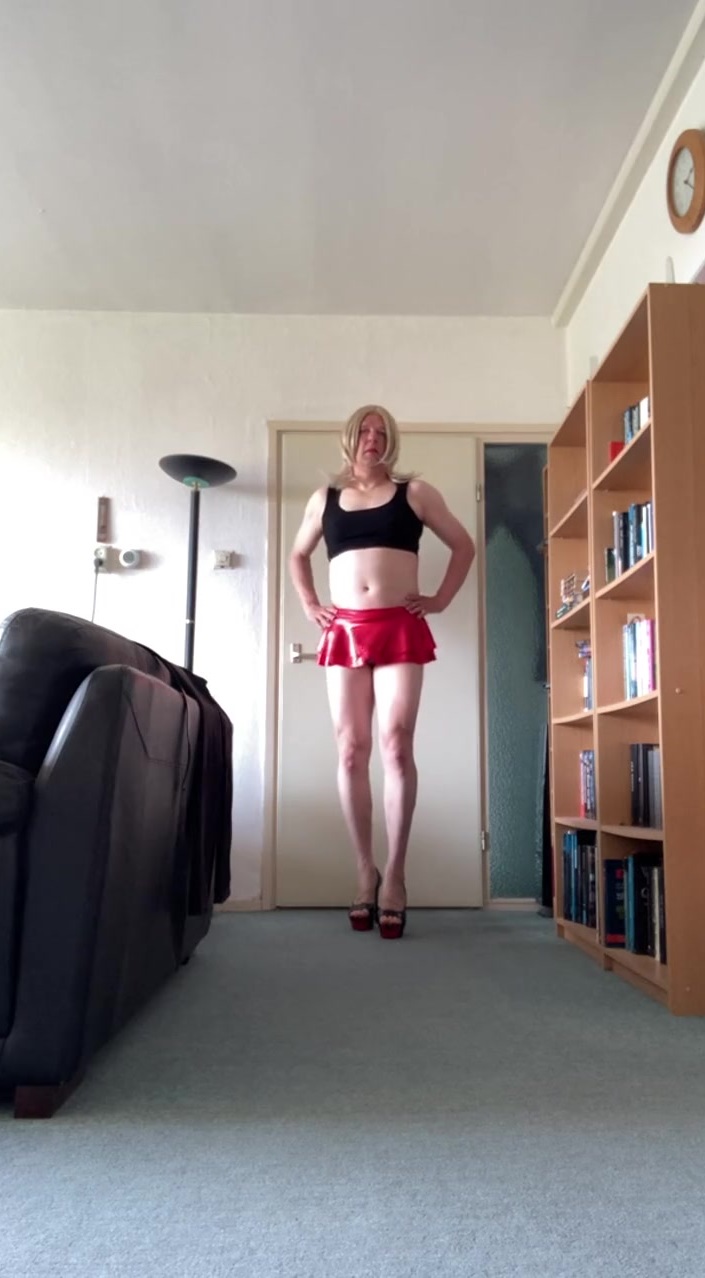 Sissy Tart ambling in Fishnets and High High-Heeled Shoes