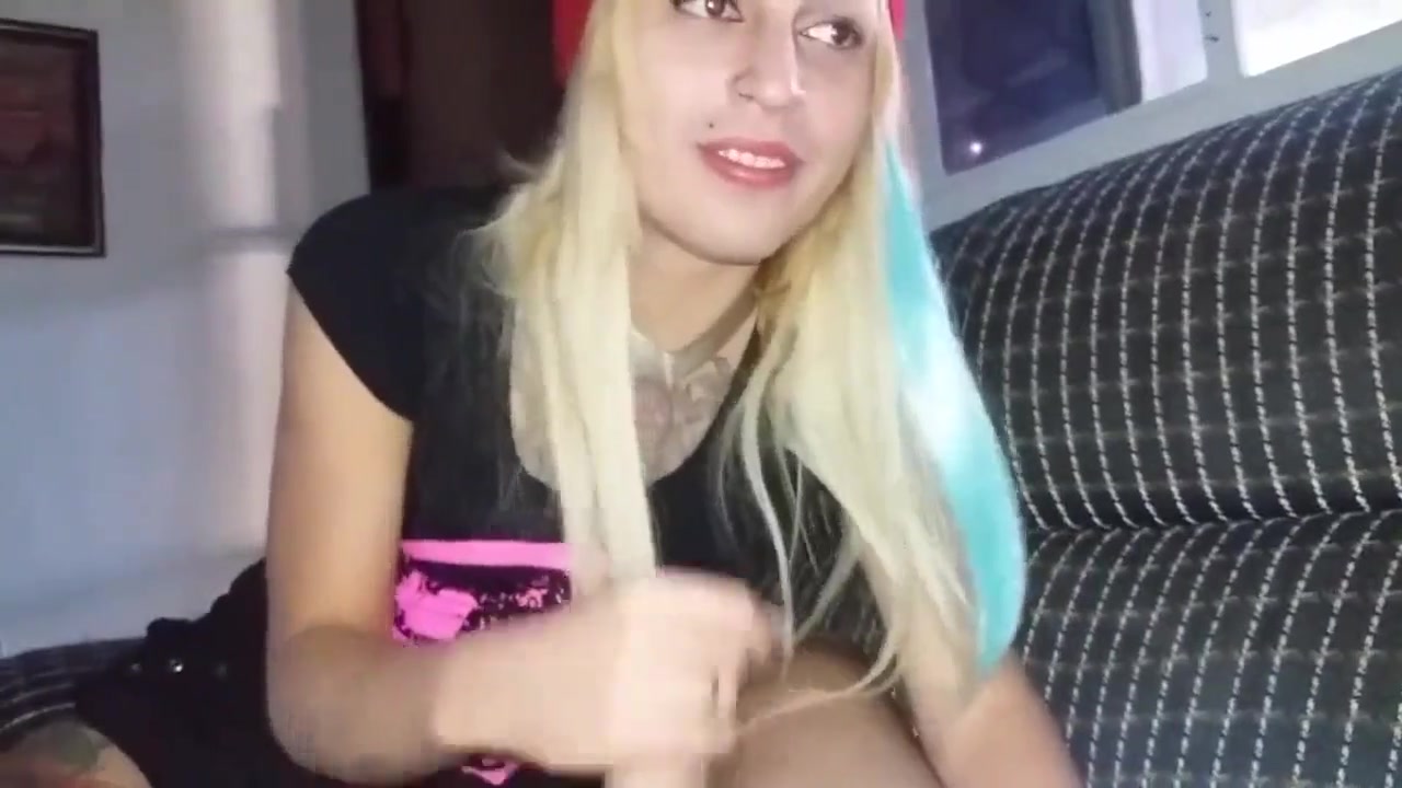 Glorious Platinum-Blonde T-Girl Likes to Fap on Web Cam
