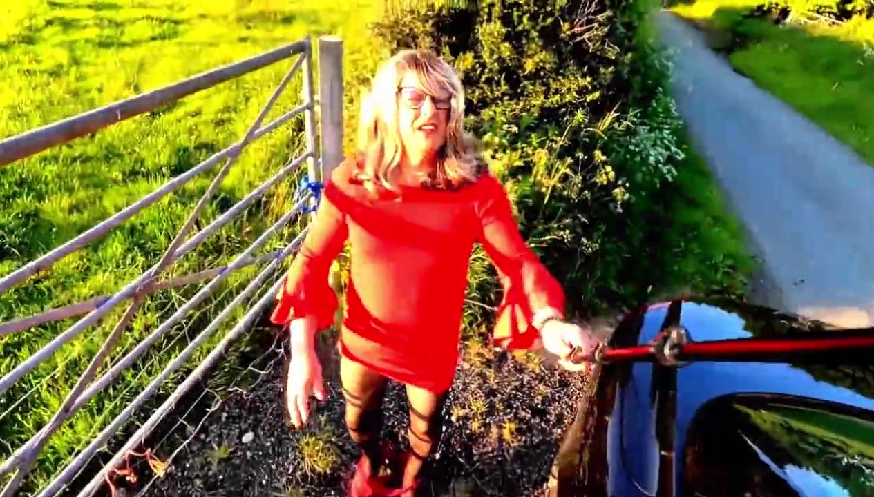 crossdresser kellycd enjoying the evening sun with a nice drive out in the countryside